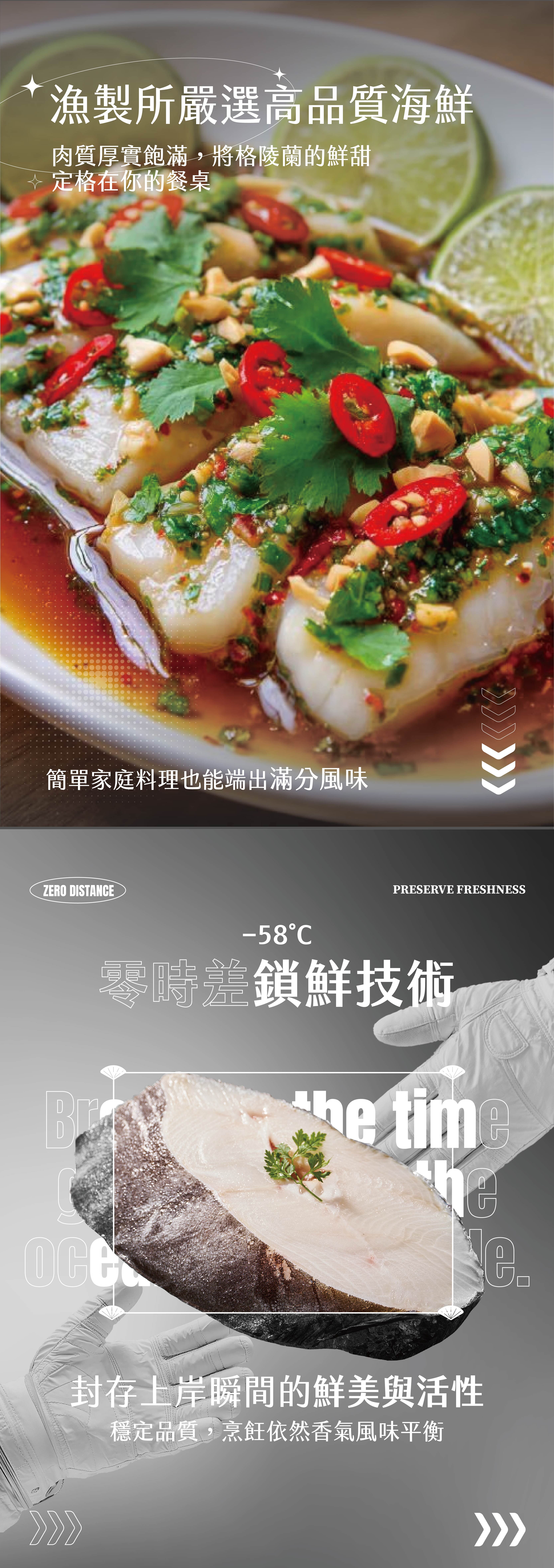 來自極地深海,肉質雪白細緻,富含 Omega-3。