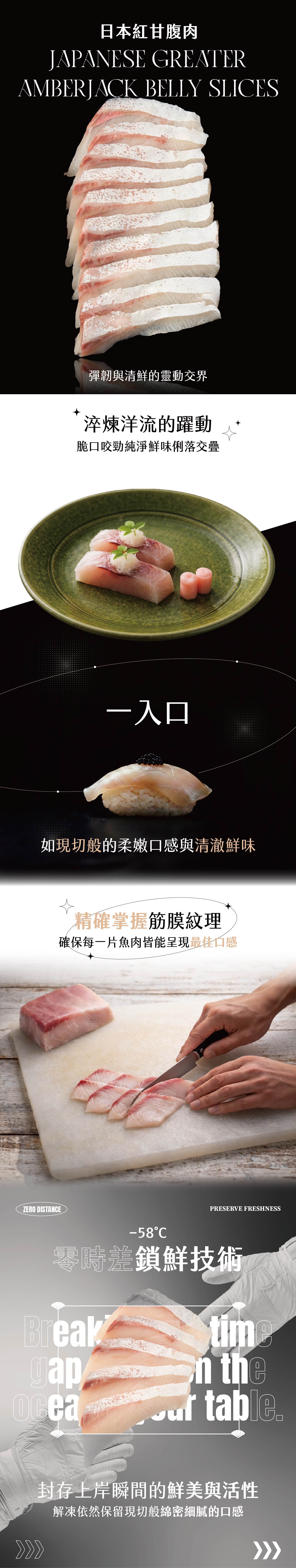 沉浸在紅甘魚最肥美的精華部位,肉質白皙帶粉,油脂分佈極其細密。