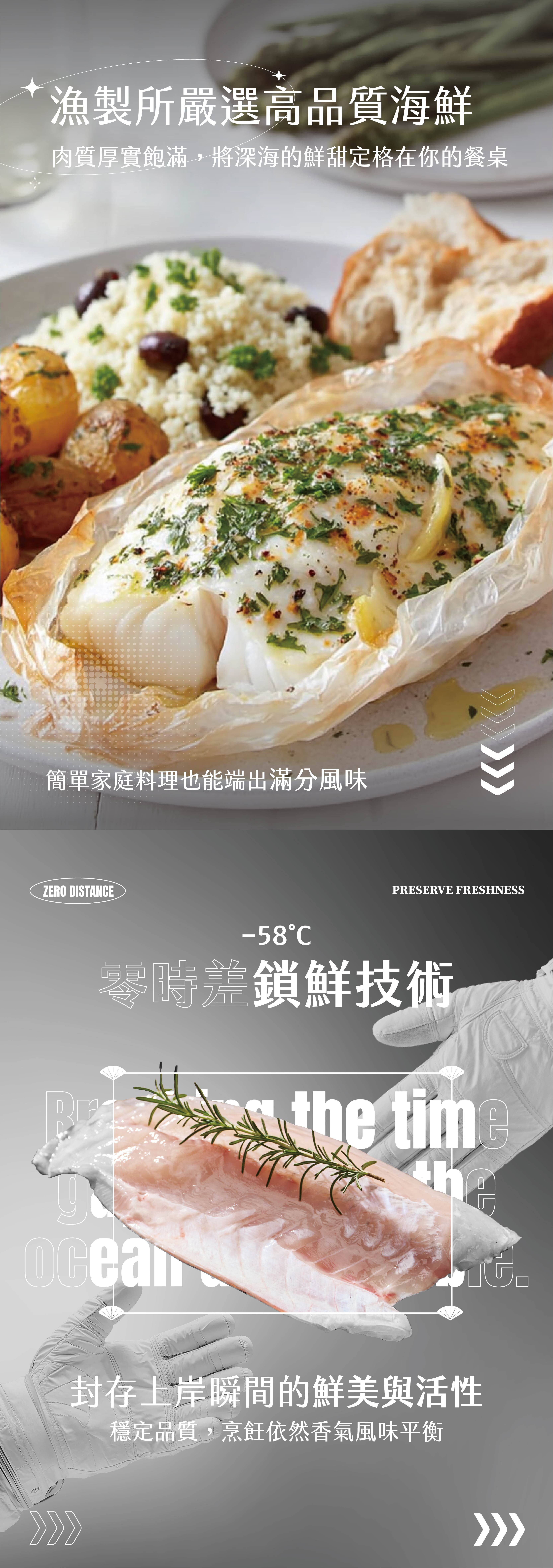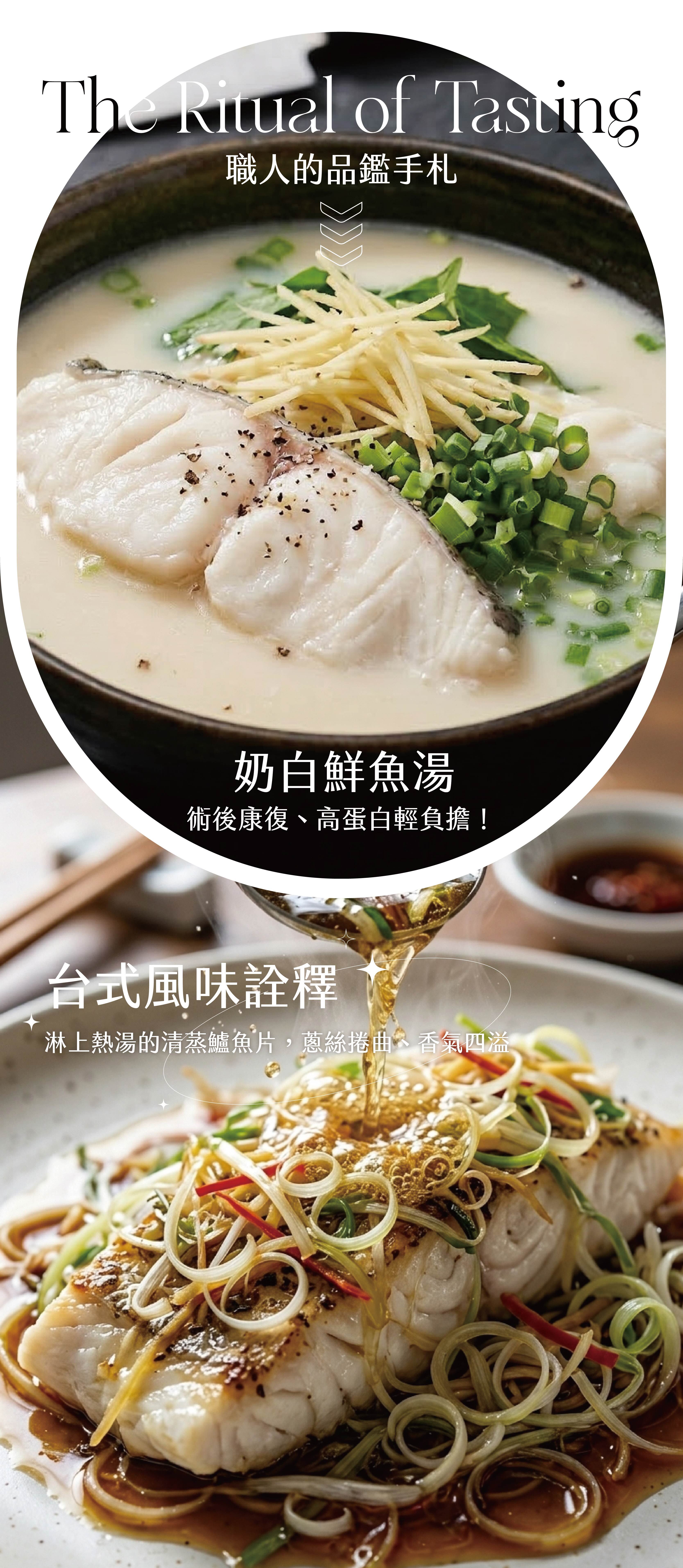 100% 台灣在地養成,鮮切保留完整骨幹精華,鎖住最原始的鮮甜與海味。